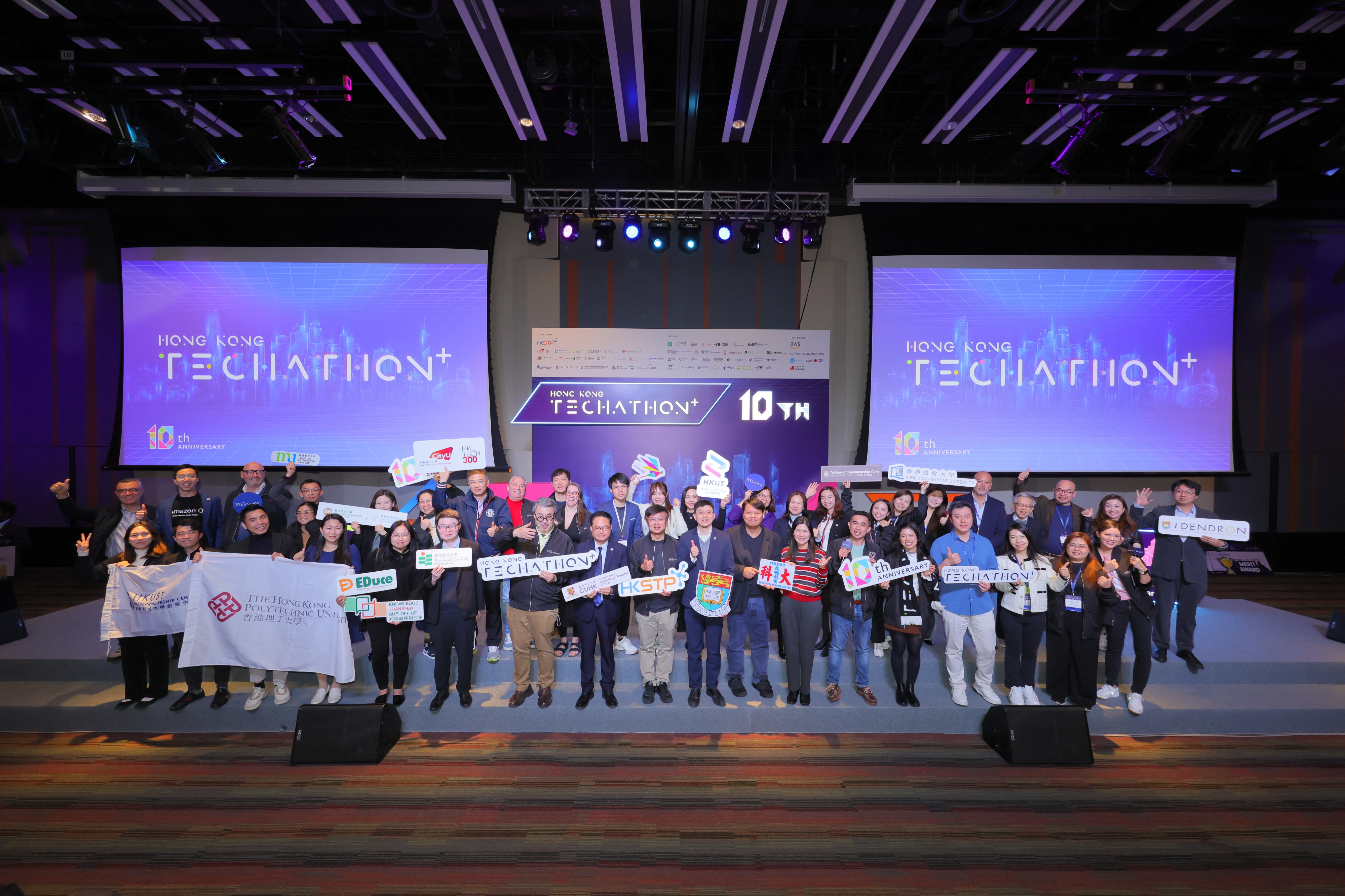 Hong Kong Techathon+ is co-organised by HKSTP and 15 local tertiary institutions, including: City University of Hong Kong, Hong Kong Baptist University, Hong Kong Metropolitan University, Hong Kong Shue Yan University, Lingnan University, The Chinese University of Hong Kong, The Education University of Hong Kong, The Hang Seng University of Hong Kong, The Hong Kong Polytechnic University, The Hong Kong University of Science and Technology, The University of Hong Kong, Tung Wah College; and three institutions under the Vocational Training Council – The Technological and Higher Education Institute of Hong Kong, Hong Kong Institute of Vocational Education, and Hong Kong Institute of Information Technology.